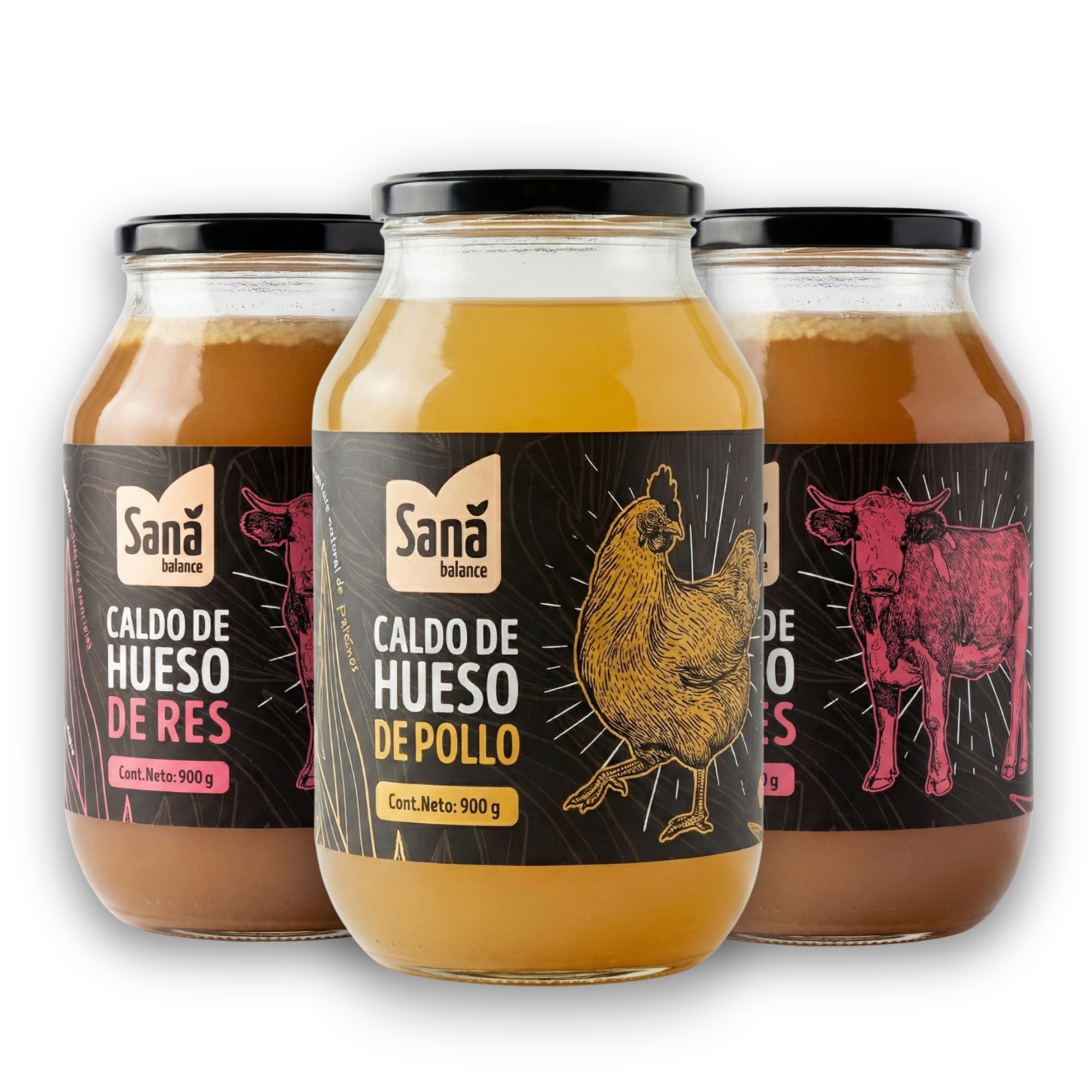 Pack mix de caldos de hueso Sana Balance – pollo y res 900 gPack de 3 caldos de hueso mix de res | 900 gr c/u